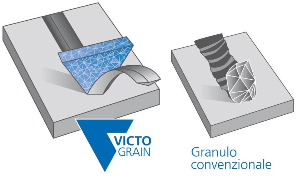 VICTOGRAIN, tutti della medesima forma e dimensione, entrano in contatto con il pezzo in lavorazione sempre con un’angolazione ottimale.