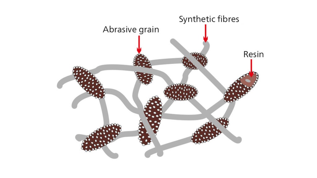Sebbene il tessuto non tessuto abbia una struttura completamente diversa dagli utensili flessibili su supporto, per entrambi i gruppi vengono utilizzati gli stessi abrasivi: