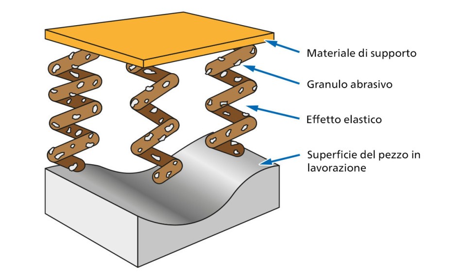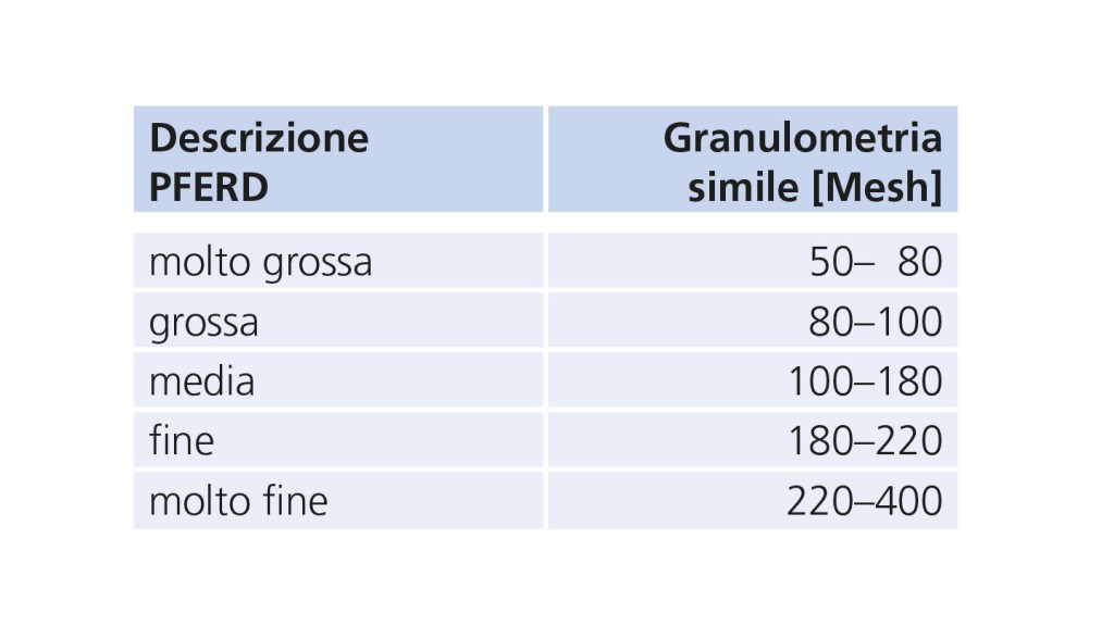 Nel caso degli abrasivi legati o abrasivi flessibili, l’utilizzatore sceglie di volta in volta la granulometria desiderata. Nel caso degli utensili in tessuto non tessuto la descrizione segue il seguente schema: