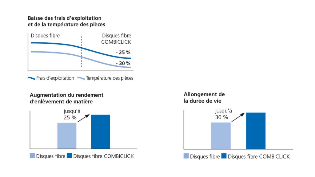 La vasta gamma di dischi fibrati COMBICLICK offre l'utensile ottimale per qualsiasi tipo di applicazione, dalla sgrossatura alla finitura.
